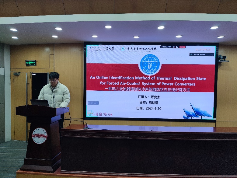 覃奥杰同学分享的文献题目为“一种电力变流器强制风冷系统散热状态在线识别方法”,本文提出了一种强制风冷系统热耗散态的在线识别方法,采用IGN算法,根据几分钟的热阻数据来识别散热器的稳态热阻,通过测试进行验证表明,该方法对散热器的散热状态识别具有较好的精度和可行性。