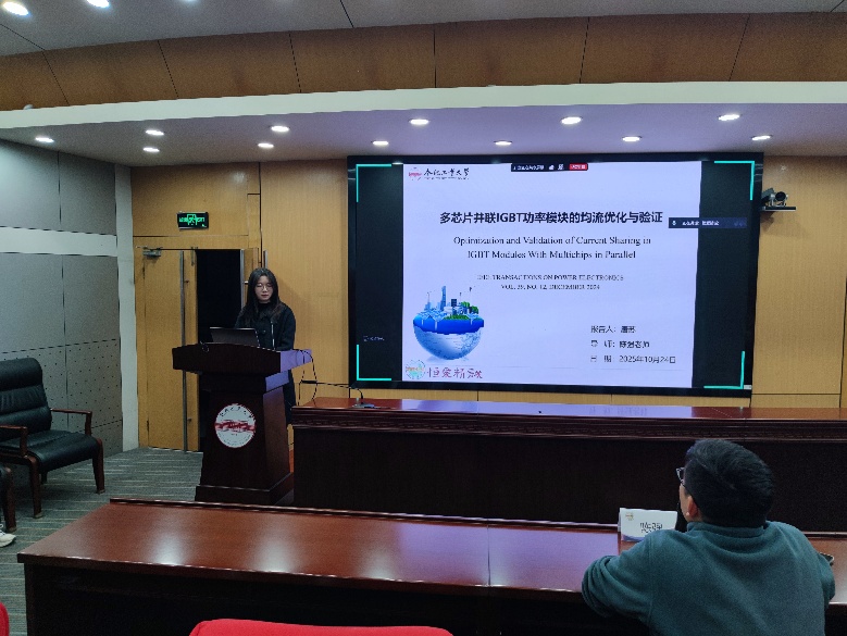唐苏同学分享的文献题目为“多芯片并联IGBT功率模块的均流优化与验证”,本文对快恢复二极管支路的均流度进行了全面、系统的研究,提出的新方案有效降低了IGBT支路和FRD支路的不均流度,并提出了一种新型均流槽结构,兼顾了IGBT支路和FRD支路的不均流度,结构简单,工业实用性强。