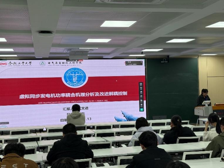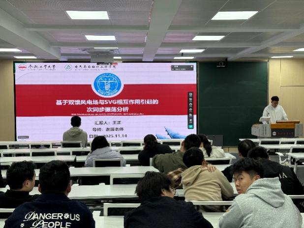 2025年11月14日19:00,恒爱精诚团队第三期文献阅读活动(“读报”活动)在逸夫楼1005教室成功举办。王涵宇老师担任指导老师,4位研究生从构网型VSG阻尼提升、VSG功率耦合解耦、DFIG-VSG控制新方案以及DFIG-SVG相互作用等方面,围绕新能源并网过程中的系统稳定性问题进行了深入交流。活动采用线上线下融合模式,校内成员现场参与,校外成员通过在线会议远程接入。
