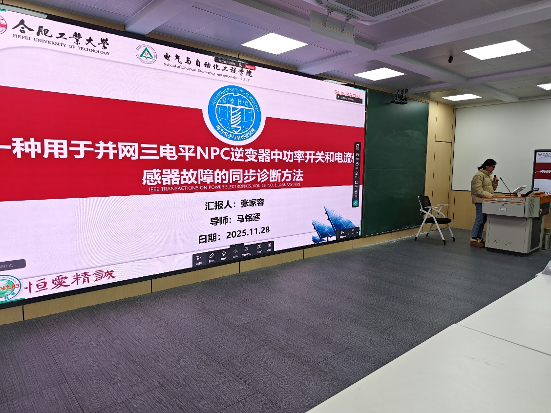 6.张家容同学:《一种用于并网三电平NPC逆变器中功率开关和电流传感器故障的同步诊断方法》。展示了一种能够同步诊断功率开关和电流传感器故障的集成化方法,以实现更全面的系统状态监控与故障保护。