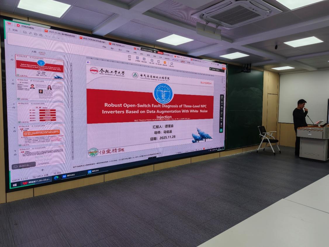 5.谭瑾渝同学:《基于白噪声注入数据增强的三电平NPC逆变器开路故障鲁棒诊断》。聚焦于功率变换器可靠性,提出通过白噪声注入进行数据增强的鲁棒开路故障诊断方法,提升了诊断算法在噪声环境下的准确性与可靠性。
