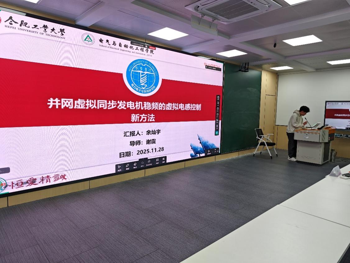 4.余灿宇同学:《并网虚拟同步发电机稳频的虚拟电感控制新方法》。针对虚拟同步发电机(VSG)的频率稳定问题,提出了一种创新的虚拟电感控制方法,并阐释了其工作原理及相较于传统方法的优势,为VSG技术提供了新的优化思路。