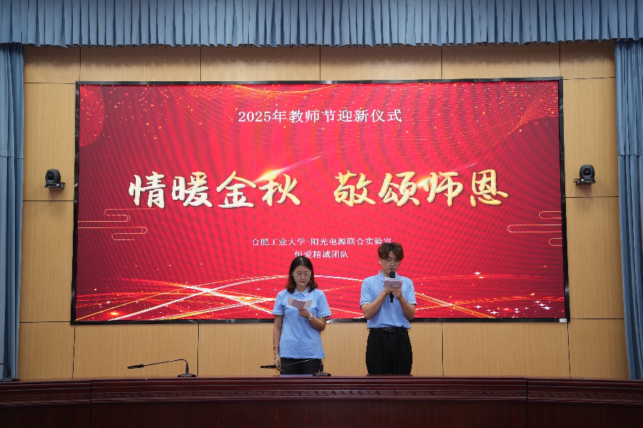 在秋风送爽、天朗气清的九月,我们迎来了每年一度的教师节。为了表达对老师们无私奉献的敬意与感谢,合肥工业大学恒爱精诚团队于2025年9月10日在学术会议中心一楼大报告厅举办了主题为“情暖金秋、敬颂师恩”的教师节暨迎新活动。本次活动的参与者包括阳光电源股份有限公司副总裁屠运武先生、阳光电源股份有限公司副总裁张显立先生、阳光氢能科技有限公司总监孙龙林先生、恒爱精诚团队的老师们以及2025级全体新生。本次活动由戴欣玥...