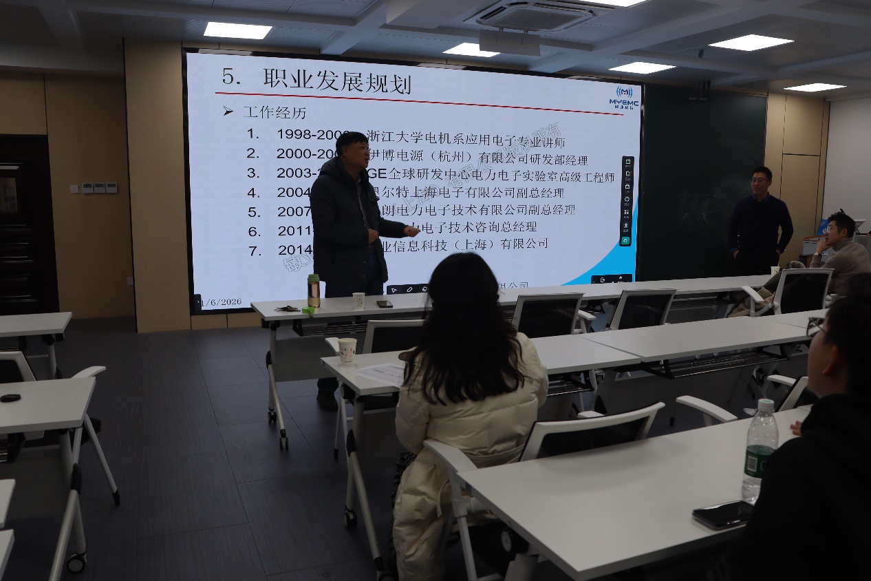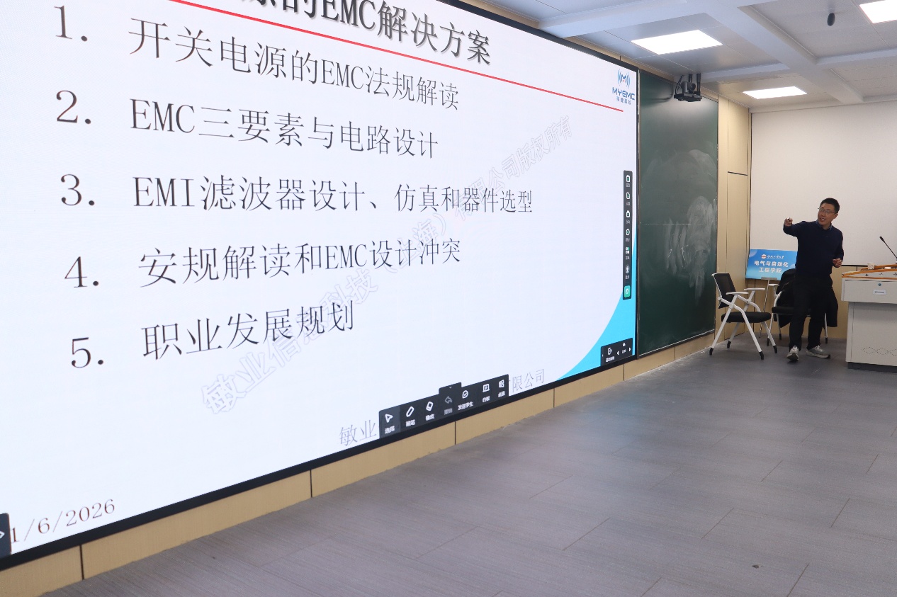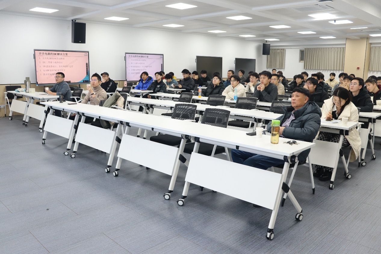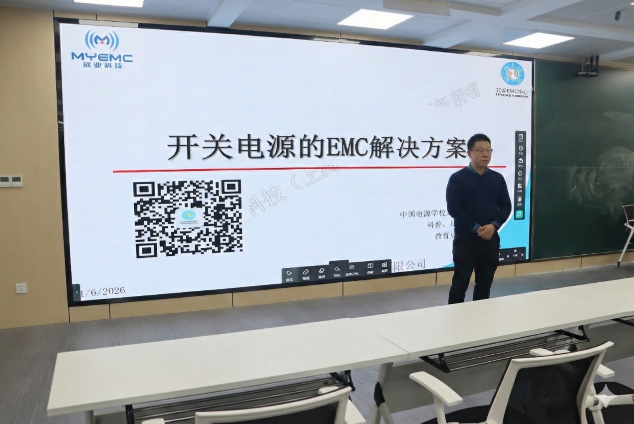 2026年1月6日,应团队陈强老师邀请,行业资深专家、中国电源学会理事、电磁兼容专委会秘书长黄敏超博士为我院师生带来了一场题为“开关电源的电磁兼容(EMC)解决方案”的精彩学术报告。本次报告会由恒爱精诚团队主办,团队负责人张兴教授及多位师生共同参加。