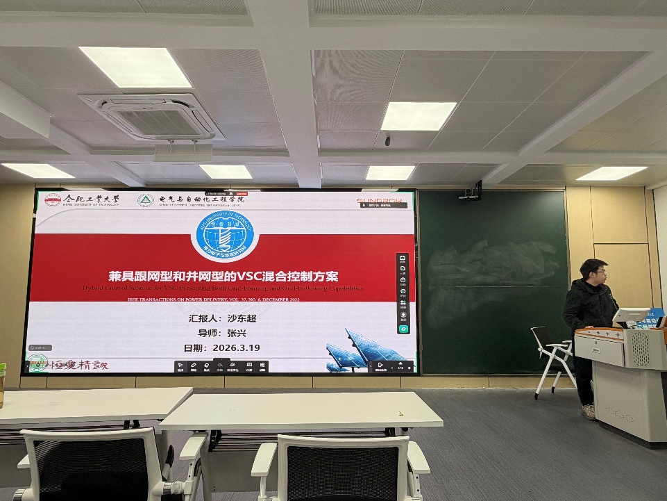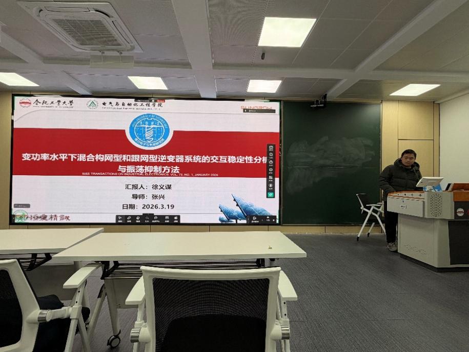 徐义谋同学分享的文献题目为“变功率水平下混合构网型和跟网型逆变器系统的交互稳定性分析与振荡抑制方法”,本文深入探讨了新能源并网中跟网型(GFLI)与构网型(GFMI)逆变器混合运行时的稳定性问题。研究指出,在弱电网环境下,跟网型逆变器的锁相环与电流环耦合会产生负阻尼效应,且系统稳定性受功率水平波动影响显著。为此,报告提出了一种增强无源性的振荡抑制方法,通过引入功率自适应的有源阻尼环节来抵消负电阻影响。实验证明,该方案能有效抑制变功率工况下的高频振荡,显著降低电流畸变率,保障了混合系统在复杂工况下的可靠运行。