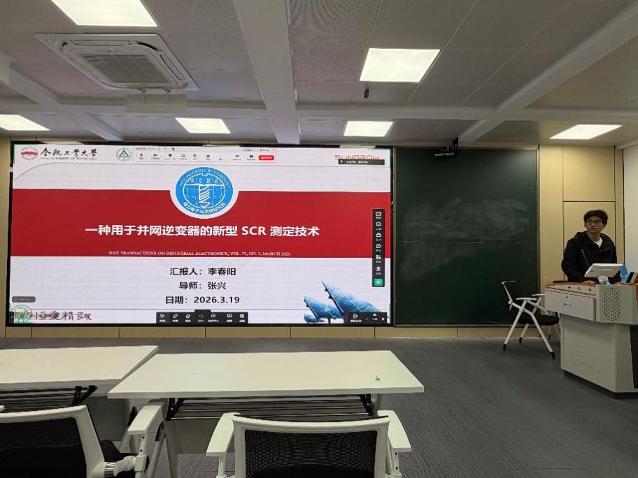 李春阳同学分享的文献题目为“一种用于并网逆变器的新型SCR测定技术”,本文针对电网强度动态变化对光伏逆变器带来的稳定性挑战,提出了一种无需额外注入谐波信号的短路比(SCR)实时测定技术。传统方法易引发系统振荡,而本研究利用频率变化率与摆动方程的关联,通过在构网型控制的虚拟惯性系数中主动注入微小测试扰动,引起暂态功率不平衡,进而精准推算出当前的电网阻抗与SCR值。该方法解决了电网强度量化难的问题,为逆变器的自适应控制提供了关键参数支撑。