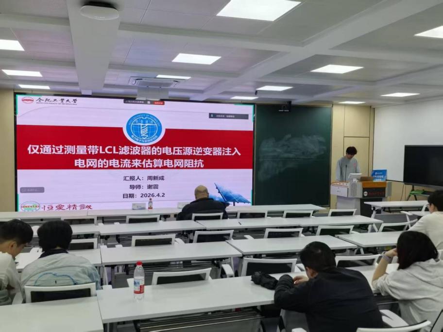 周新成同学汇报的题目是《仅通过测量带LCL滤波器的电压源逆变器注入电网的电流来估算电网阻抗》,该研究提出了一种基于输出电流测量的电网阻抗估计方法,传统方法通常通过额外注入扰动信号来获取电网阻抗信息,而该方法通过对LCL滤波器输出电流及相关电压信号进行分析,实现对电网阻抗的间接估计,该方法具有无需额外扰动、实现方式相对简洁等特点。