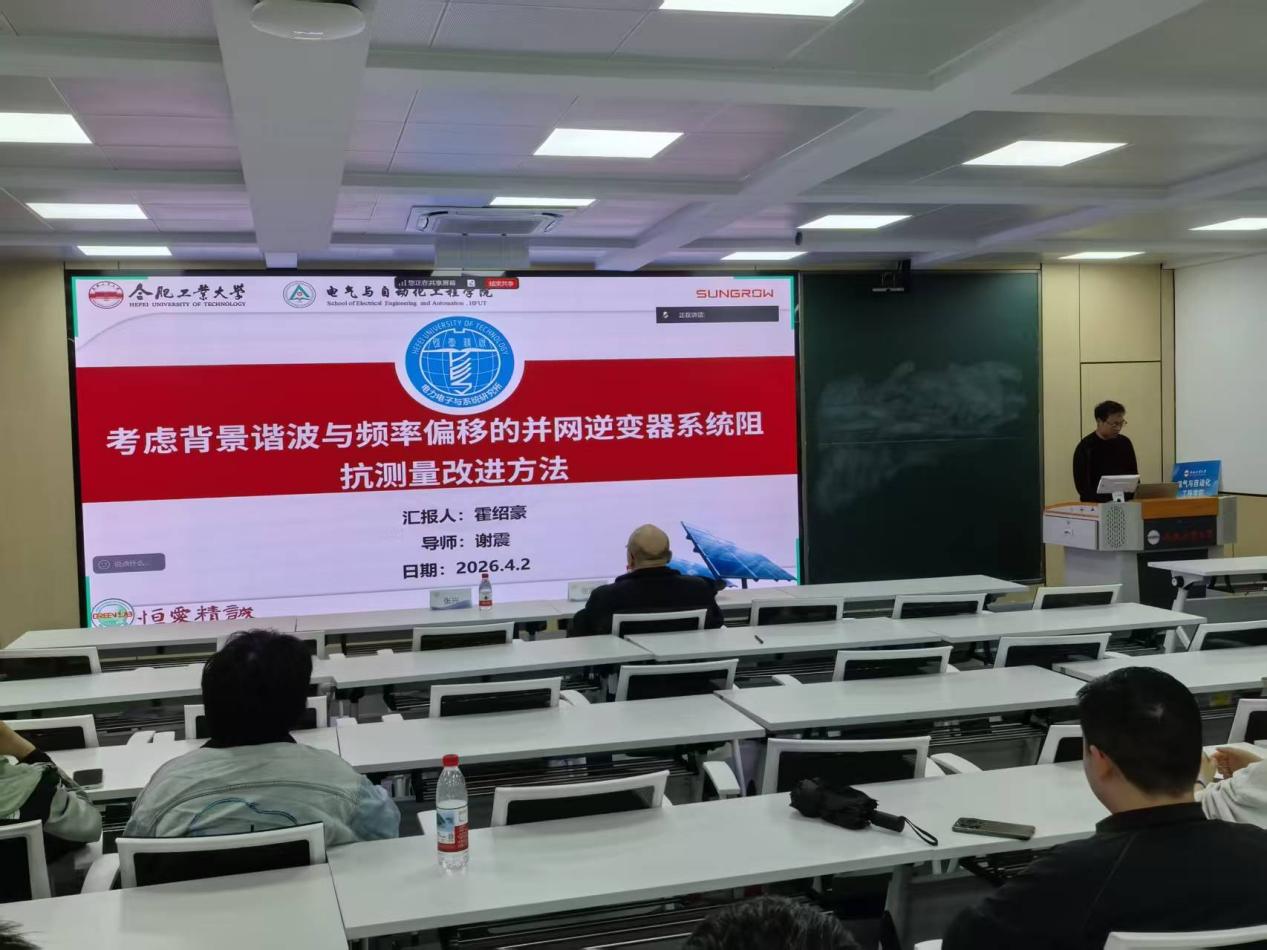 霍绍豪同学汇报的题目是《考虑背景谐波与频率偏移的并网逆变器系统阻抗测量改进方法》,该文献针对并网逆变器输出阻抗测量在实际电网环境中的误差问题展开研究,在含有背景谐波及电网频率偏移的情况下,传统阻抗测量方法往往难以获得准确结果,进而影响系统稳定性分析与控制设计。报告介绍了一种通过改进信号注入方式与滤波提取策略来提高测量精度的方法,改进后的方法能够在复杂电网条件下保持较高准确性,为并网逆变器稳定性分析与控制优化提供更加可靠的参数依据。